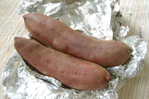 1. 焼き芋を アルミホイルで包む(焦げ防止&じっくり温める)