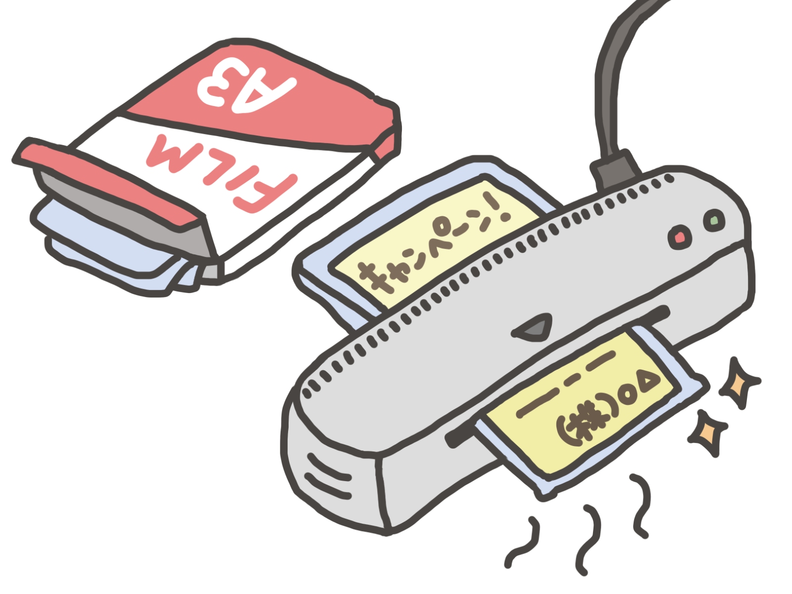 - フィルムをラミネーターに通す